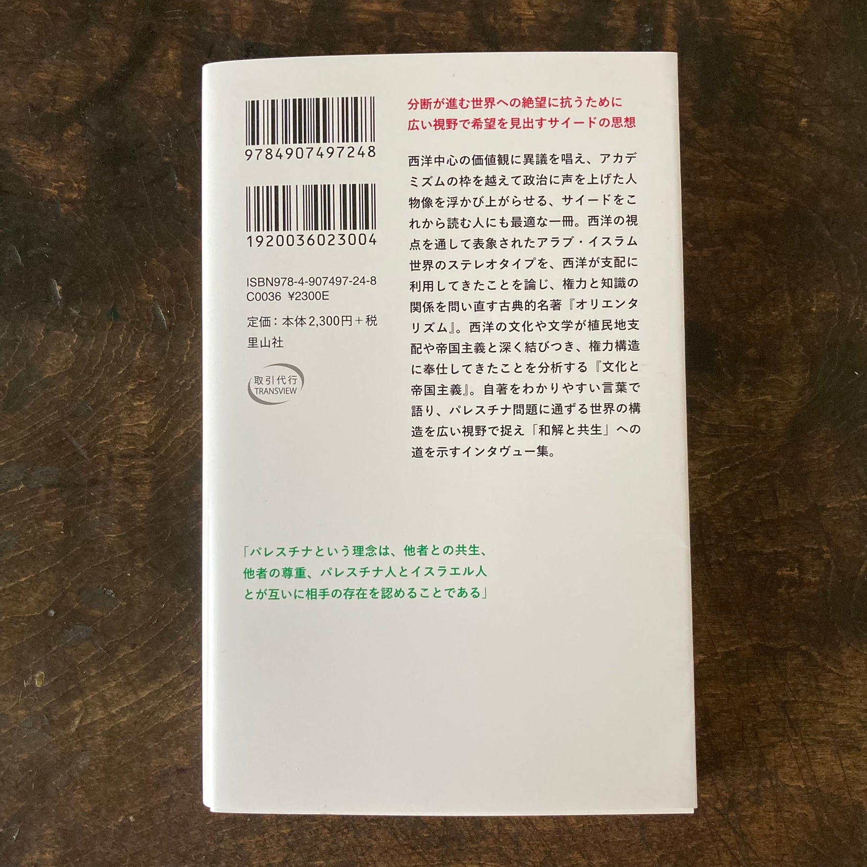 西洋中心の価値観に異議を唱え、アカデミズムの枠を越えて政治に声を上げた人物像を浮かび上がらせる、サイードをこれから読む人にも最適な一冊。西洋の視点を通して表象されたアラブ・イスラム世界のステレオタイプを、西洋が支配に利用してきたことを論じ、権力と知識の関係を問い直す古典的名著『オリエンタリズム』。西洋の文化や文学が植民地支配や帝国主義と深く結びつき、権力構造に奉仕してきたことを分析する『文化と帝国主義』。自著をわかりやすい言葉で語り、パレスチナ問題に通ずる世界の構造を広い視野で捉え「和解と共生」への道を示すインタヴュー集。